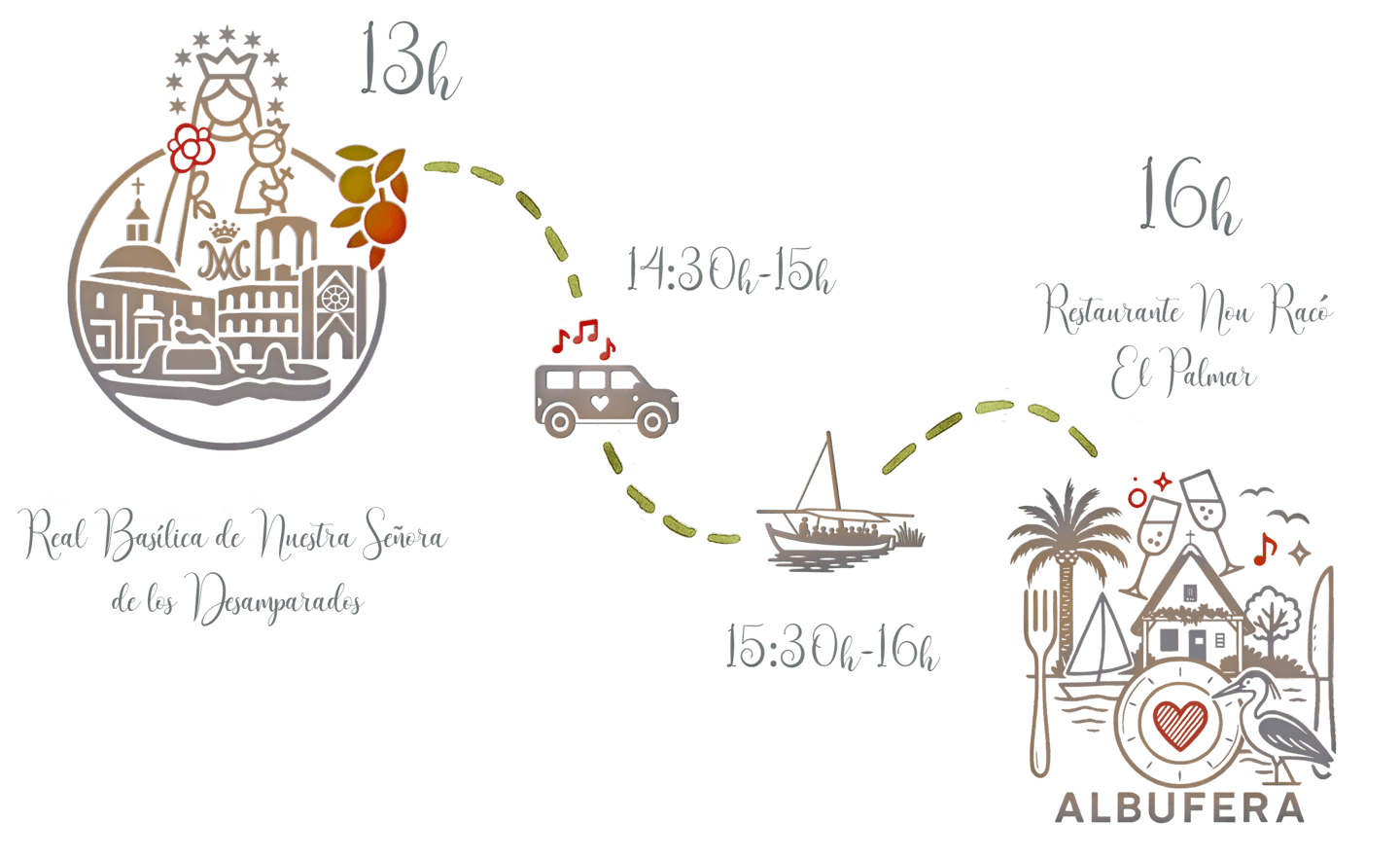 El restaurante elegido para celebrar el convite es Nou Racó , un restaurante que se encuentra dentro de la propia Albufera a escasos kilómetros de un pueblo tradicional de pescadores de la Albufera como es "El Palmar".