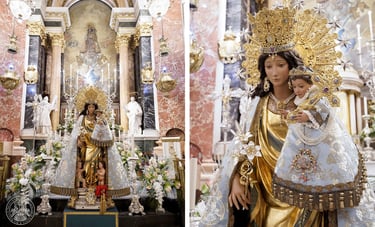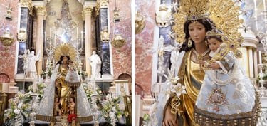 ¿sabías que, según cuenta la leyenda, cuando construían la basílica, la imagen de la Virgen se giraba sola por las noches para mirar al pueblo? Al final, los obreros decidieron dejarla así. Desde entonces, muchos sienten que su mirada consuela y protege. Dicen que, si te fijas bien, parece que te guiña un ojo. ¡Una Virgen con carácter y mucho amor valenciano!