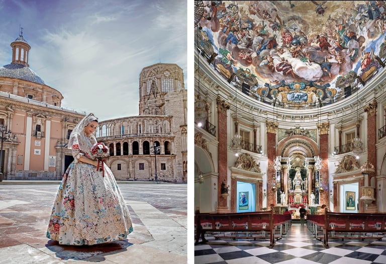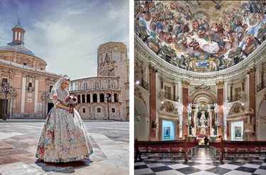 La Basílica de la Mare de Déu dels Desamparats es uno de los lugares más entrañables de Valencia. Dedicada a la patrona de la ciudad, la querida “Geperudeta”. Este templo del siglo XVII está lleno de historia, tradición y devoción. Justo al ladito de la Catedral, en pleno centro, es un lugar que emociona tanto a creyentes como a curiosos. Su interior barroco es precioso, y la imagen de la Virgen tiene algo especial que atrapa. Y hablando de especial…